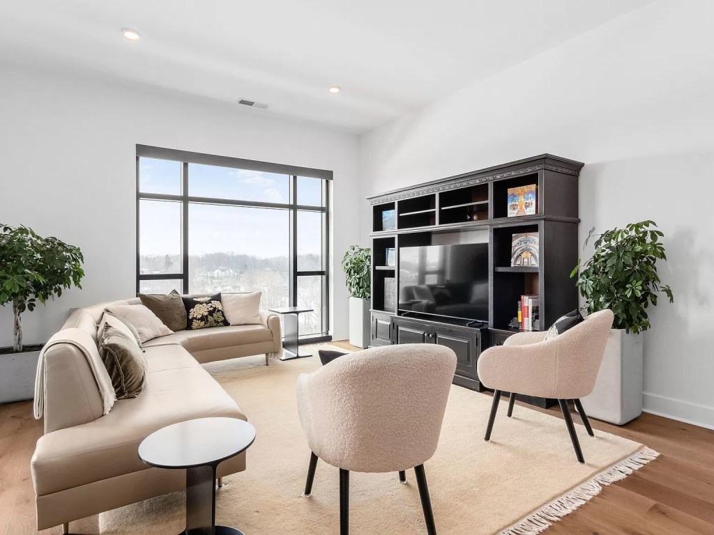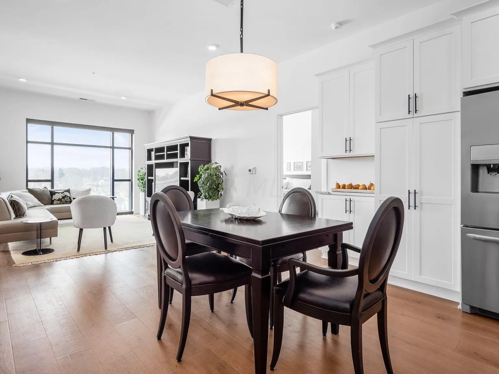 Flexible spaces and multi-functional furniture are used in this smaller condo to maximize efficiency without sacrificing style.